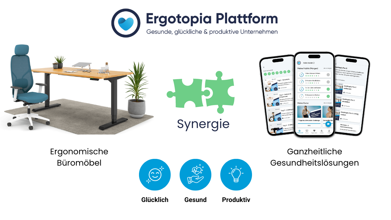 Wir bringen den Einkauf von ergonomischen Büromöbeln mit BGM Angeboten in Einklang. Denn nur so entfaltet Dein Unternehmen das volle gesundheitliche & produktive Potenzial – egal, ob im Büro, Home Office oder Remote.